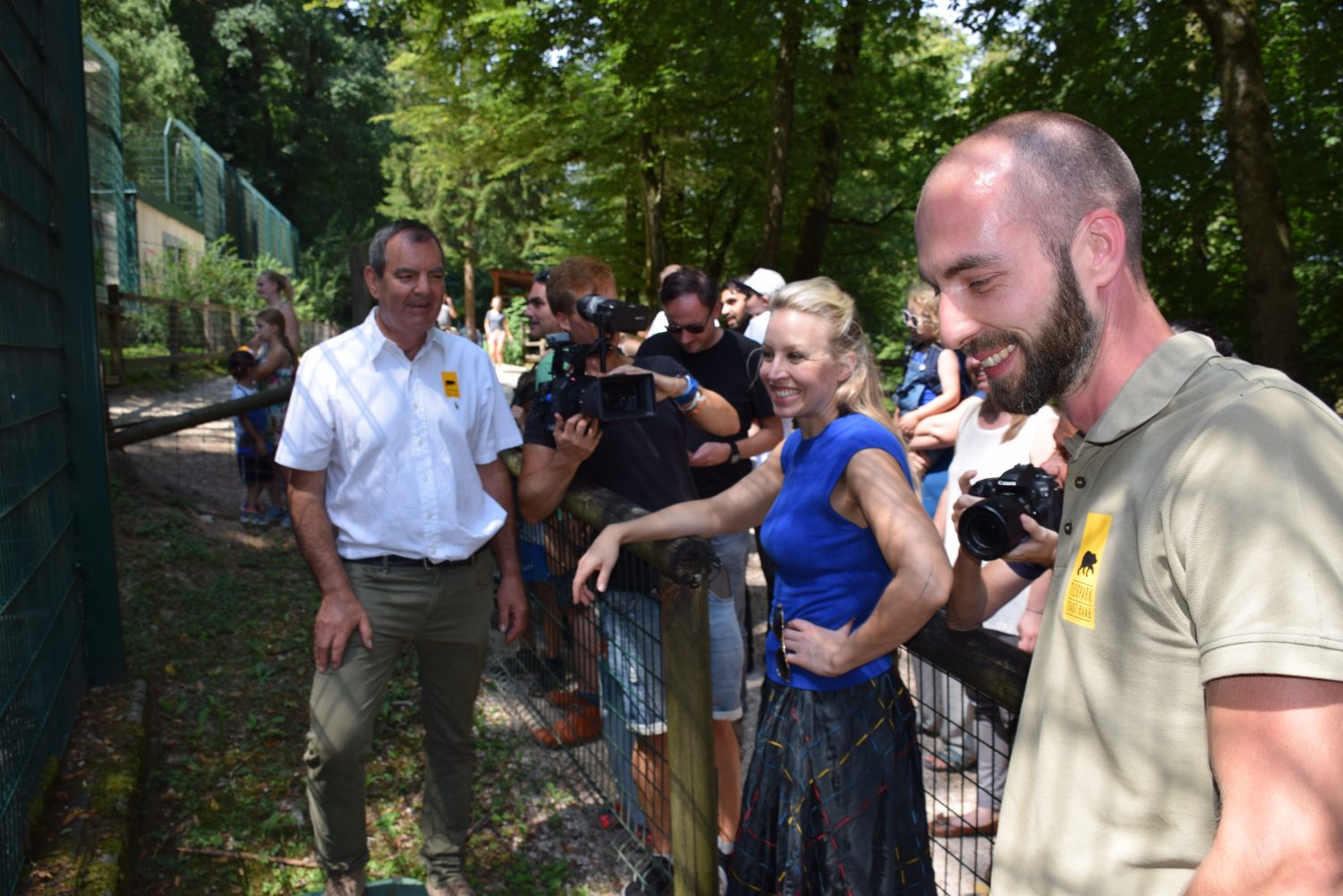 Nina Proll präsentierte sehr gerne vor den anwesenden Journalisten und Zuschauern die vom Tierparkleiter Dr. Auinger erhaltene Namensgebungsurkunde ihres Patentieres.
