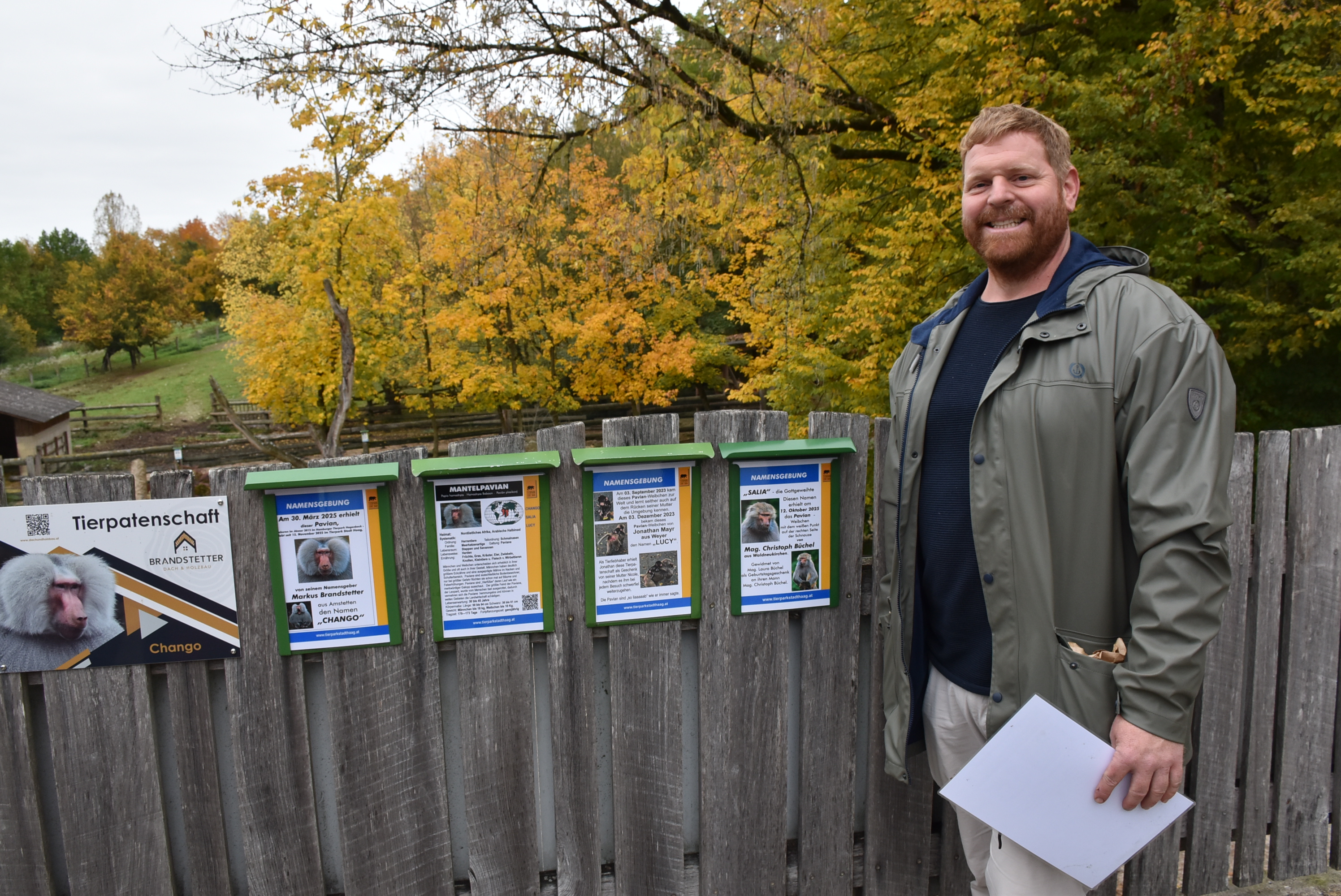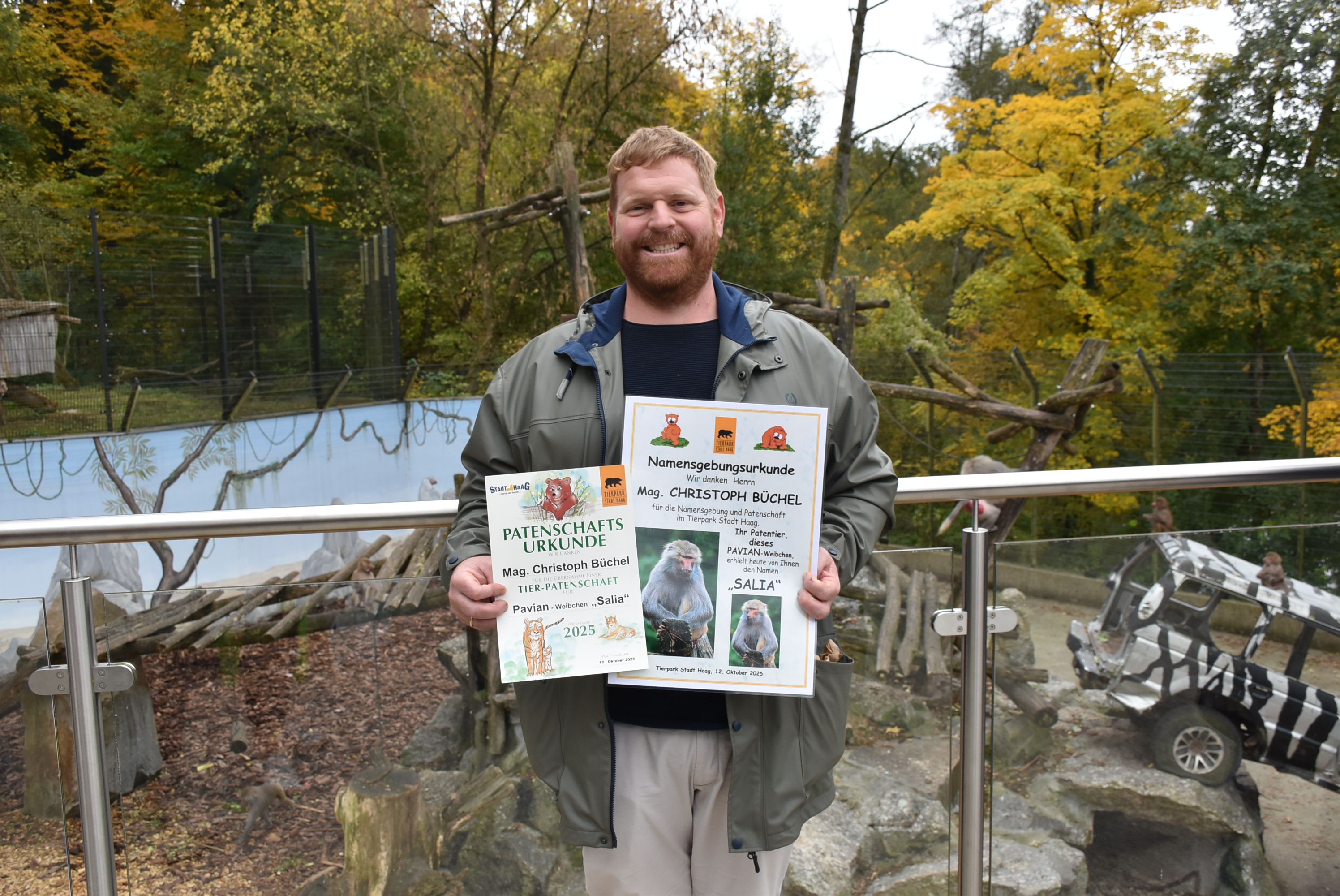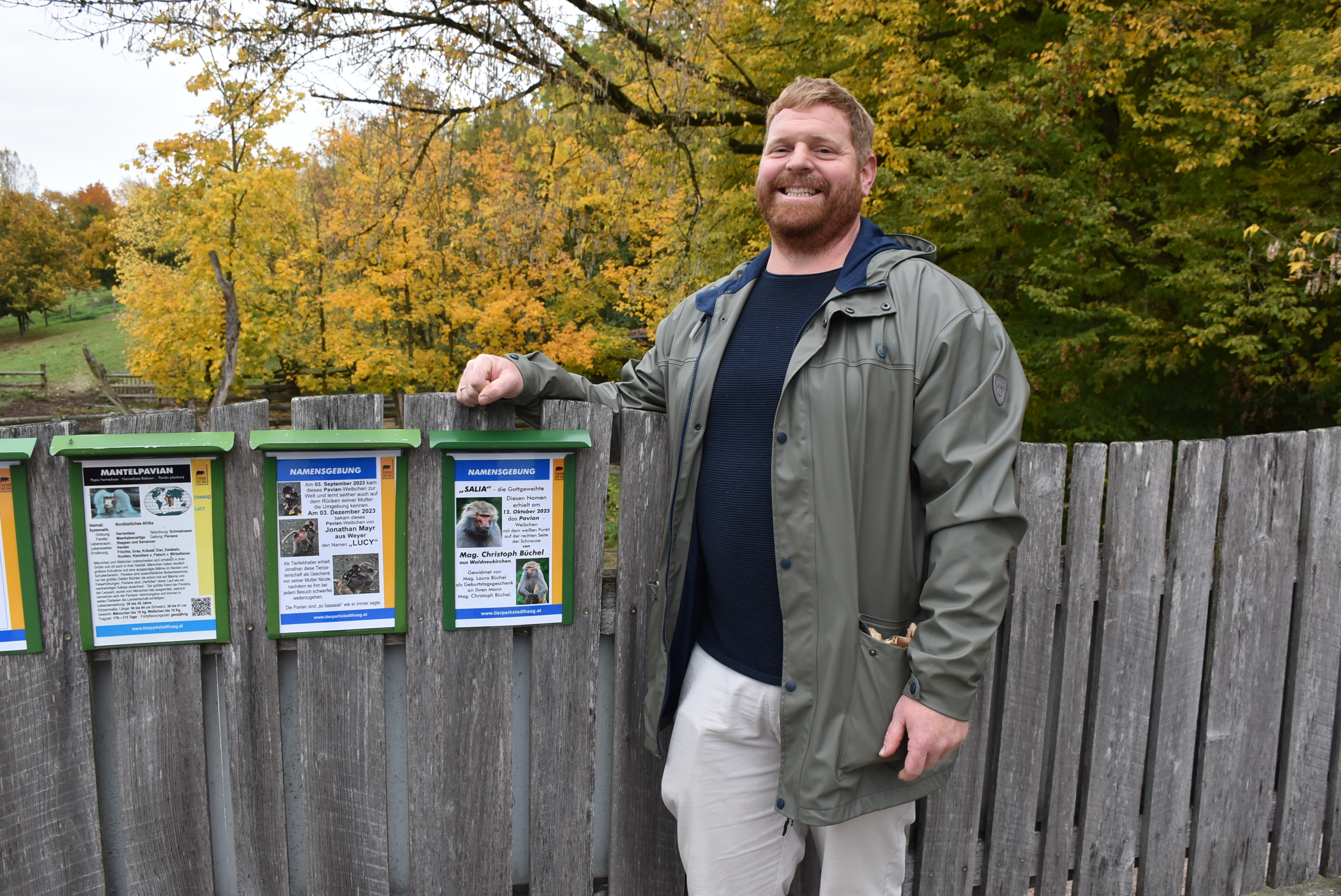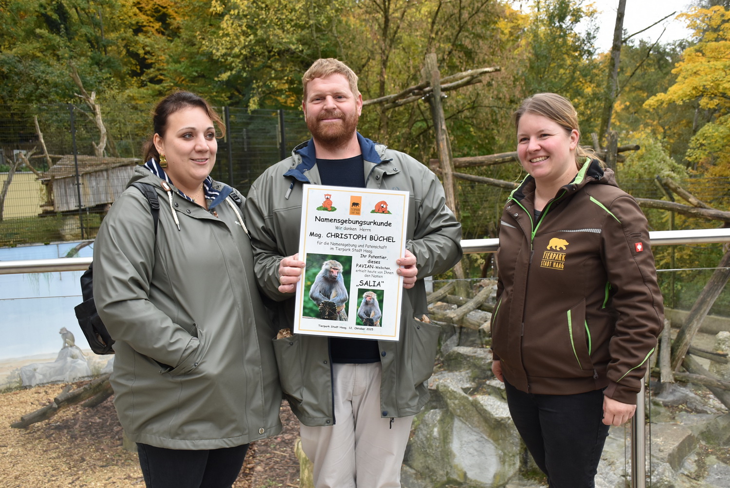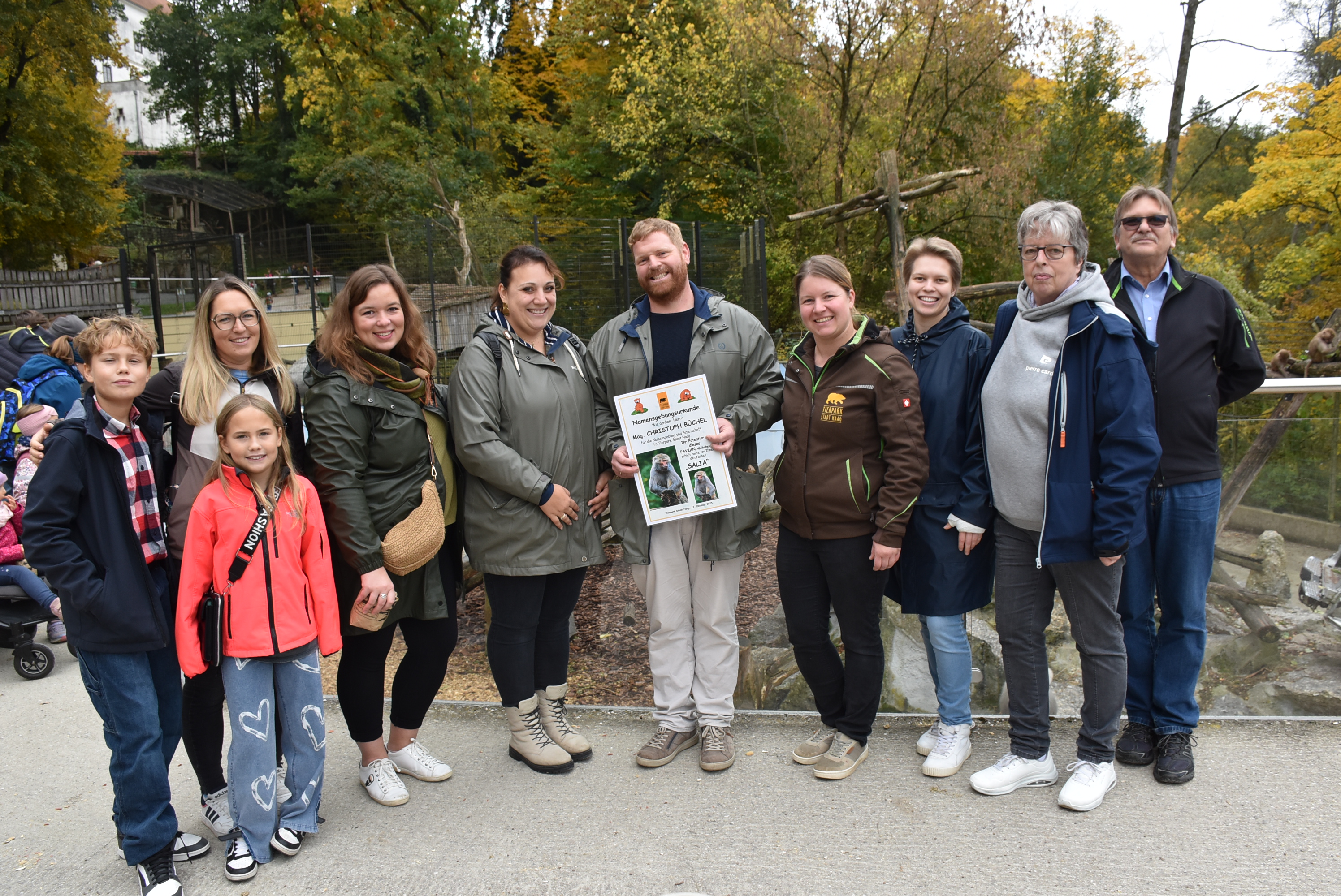 Damit auch die Besucherinnen und Besucher des Tierparks über den Namen, seine Bedeutung und den Namensgeber informiert sind, wurde eine eigene Namensgebungstafel angebracht – ein Moment, den Christoph mit sichtlichem Stolz begleitete. Gemeinsam mit seinen Gästen ließ er anschließend sein Patentier „Salia“ hochleben.