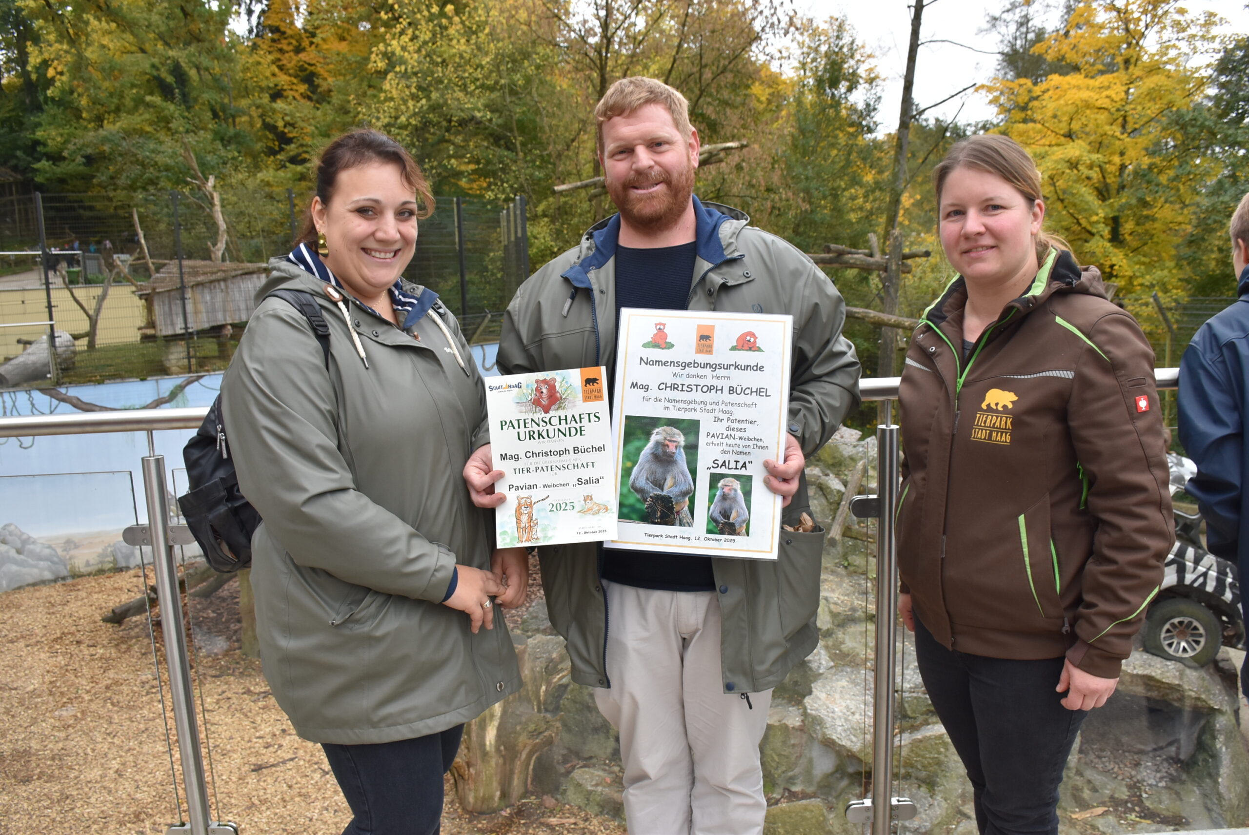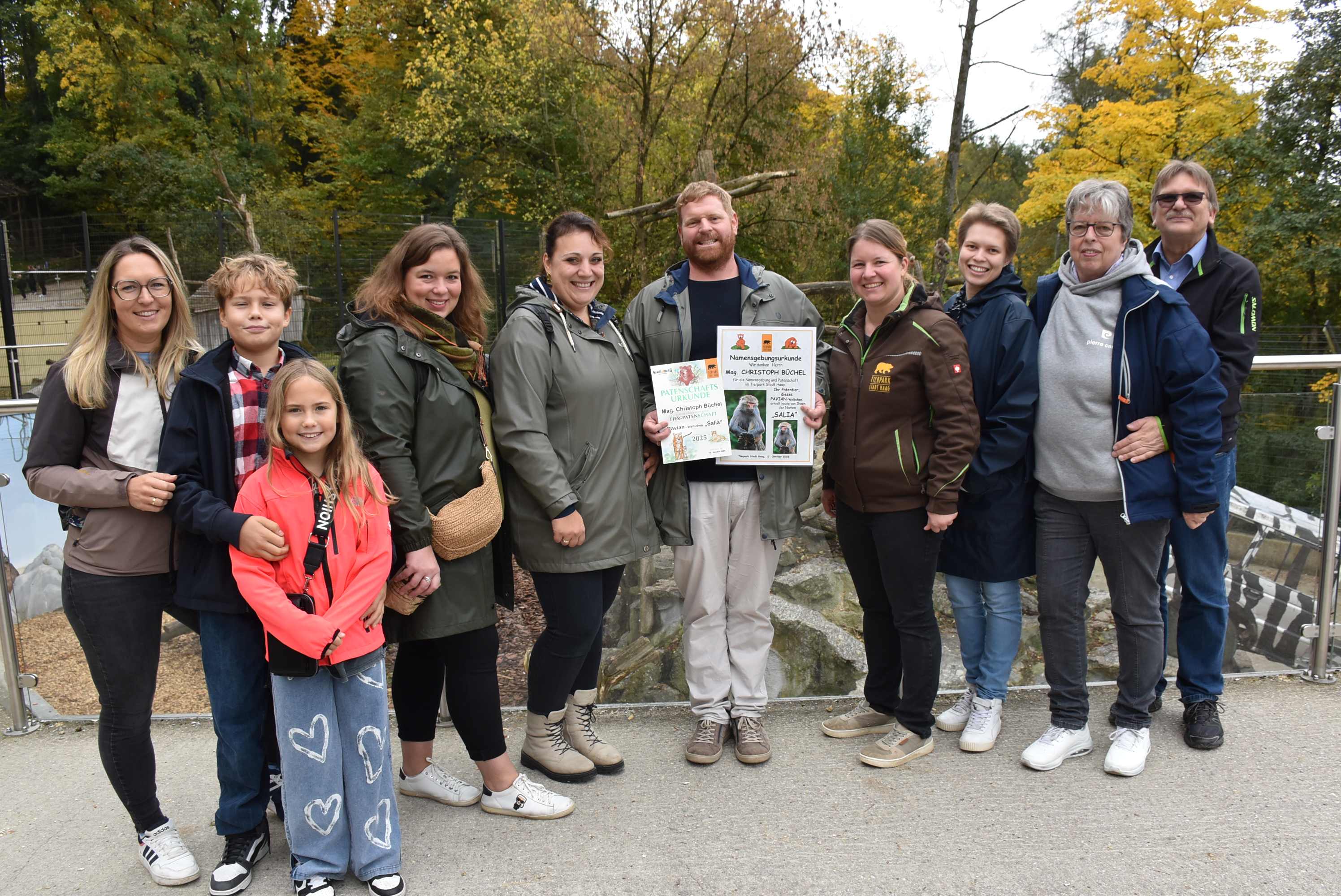 Am Sonntag, dem 12. Oktober 2025, fand schließlich bei herrlichem Herbstwetter die feierliche Namensgebung im Tierpark statt. Christoph wurde dabei von seiner Ehefrau Laura, den Söhnen Sebastian und Theodor sowie zahlreichen Verwandten und Freunden begleitet, die an diesem besonderen Moment teilhaben wollten.