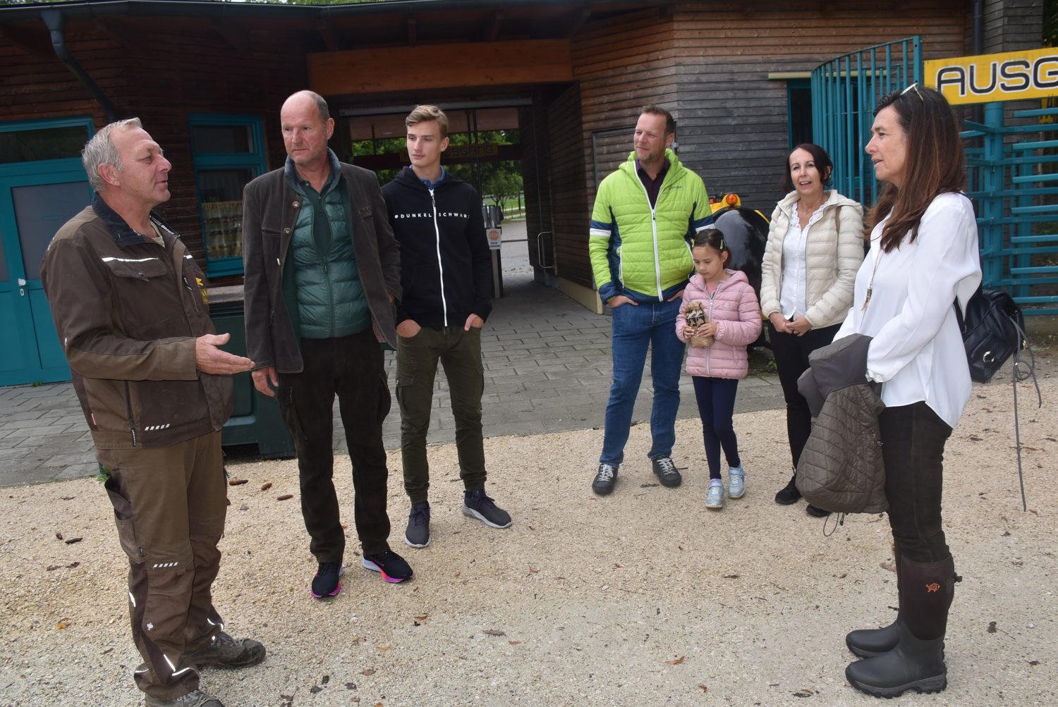 Nach Gruppenfotos im Eingangsbereich wanderten die Ehrengäste zu den Shetland-Ponys. Entlang der Wegstrecke konnten noch die eine oder andere eindrucksvolle Tierbeobachtung eingefangen werden. Bei den Ponys angekommen begleitete Cheftierpfleger Stefan Hammelmüller die Namensgeberin und ihre Gäste in das Areal der Shetland-Ponys um das junge Patentier, deren Mutter „Kerry“ und die Artgenossen hautnah erleben zu können. Vorbereitete Futterrationen wurde von Birgit Brandner-Wallner mit großer Freude an die Shetties verfüttert. Die Tiere hielten sich an keine Reihenfolge, sondern bedrängten die Futtergeberin, um Karotten zu ergattern.