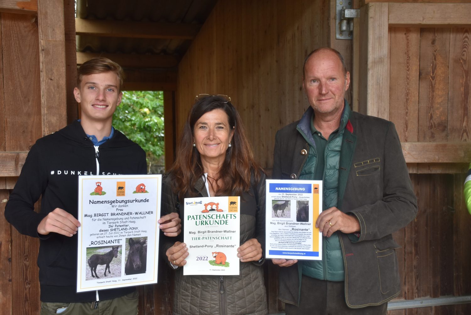 In seinem Bekanntenkreis erzählte Günther Gatterbauer von seinen Erlebnissen bei der Namensgebungsfeier seines Patentieres, dem Zwergesel „Olaf“. Darüber war seine Bekannte Birgit so sehr begeistert, dass auch sie Interesse für eine Tiernamensgebung bekam. Ein Patentier bot sich für die Pferdeliebhaberin aber noch nicht an. Es war ihr aber nicht unbekannt, dass es bei den Shetland-Ponys möglicherweise bald Nachwuchs geben könnte.