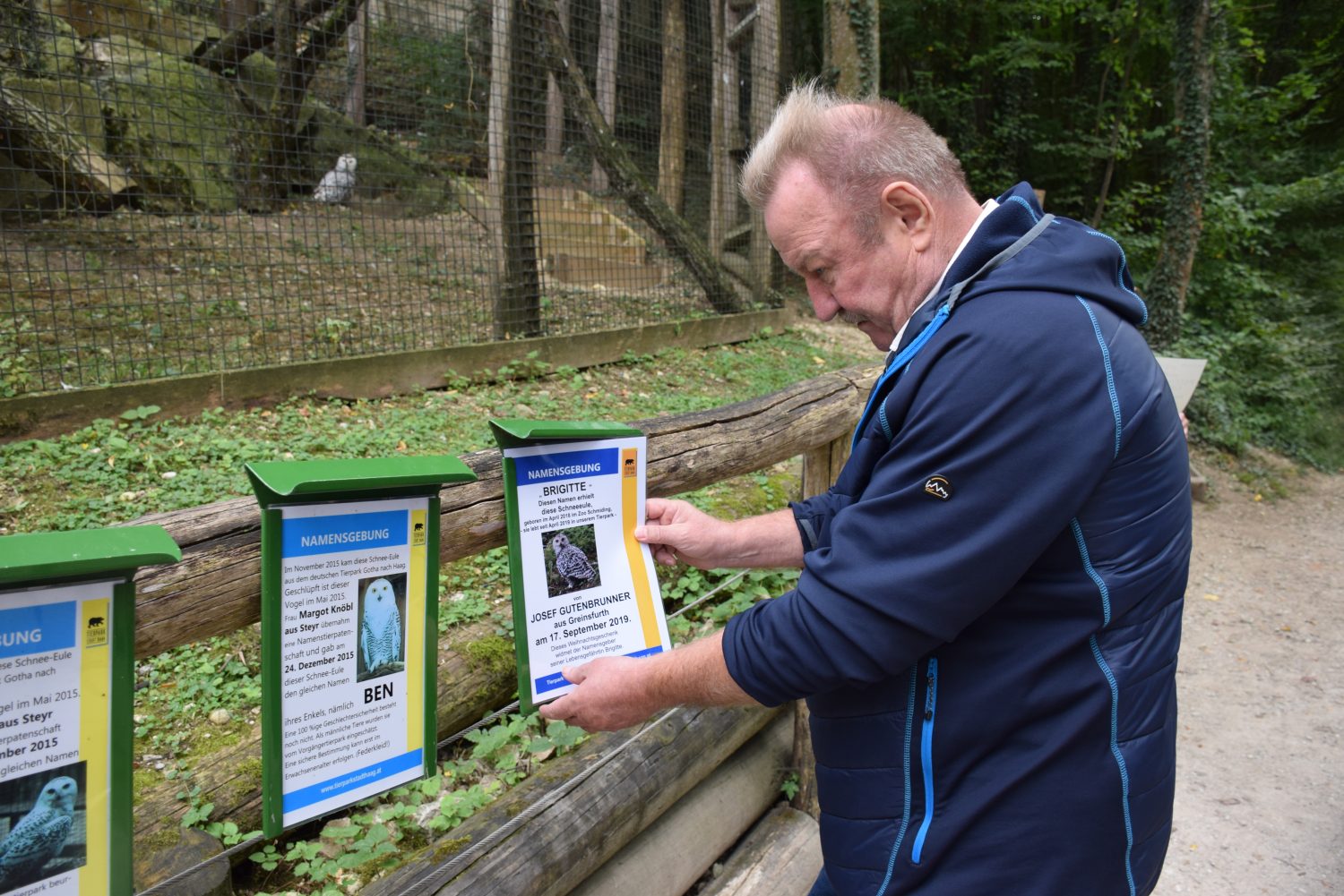 Seit den 80er Jahren des vergangenen Jahrunderts besuchte Josef Gutenbrunner mit seiner Familie mehrmals im Jahr den Tierpark Haag. Jede Jahreszeit hat es in sich und bietet eine Vielzahl von spannenden Eindrücken und Erlebnissen, die auch bei den Kindern Barbara und Stefan noch viele positive Erinnerungen an diese Tierparkausflüge erwecken. Bei der Suche nach einem Weihnachtsgeschenk erinnerten sich die beiden an diese Zeit. So hatten sie die Idee sich für das Geschenk einer Namensgebung eines Tieres zu entscheiden. Ihr Vater interessierte sich immer schon für Eulen, besonders für Schneeeulen, wodurch eine Eingrenzung der möglichen Tierarten gegeben war.